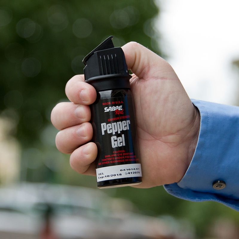 34 34 product ratings - Sabre MK-3-GEL-US 15 Range Red Pepper Gel Stream Spray BeltClip 18oz EXP 1024. Features a non-skid pad to prevent door. This SABRE Red Pepper Gel from our Tactical Series offers you protection from an impressive distance of 18 feet 55 m and provides protection against multiple threats with 18 bursts.